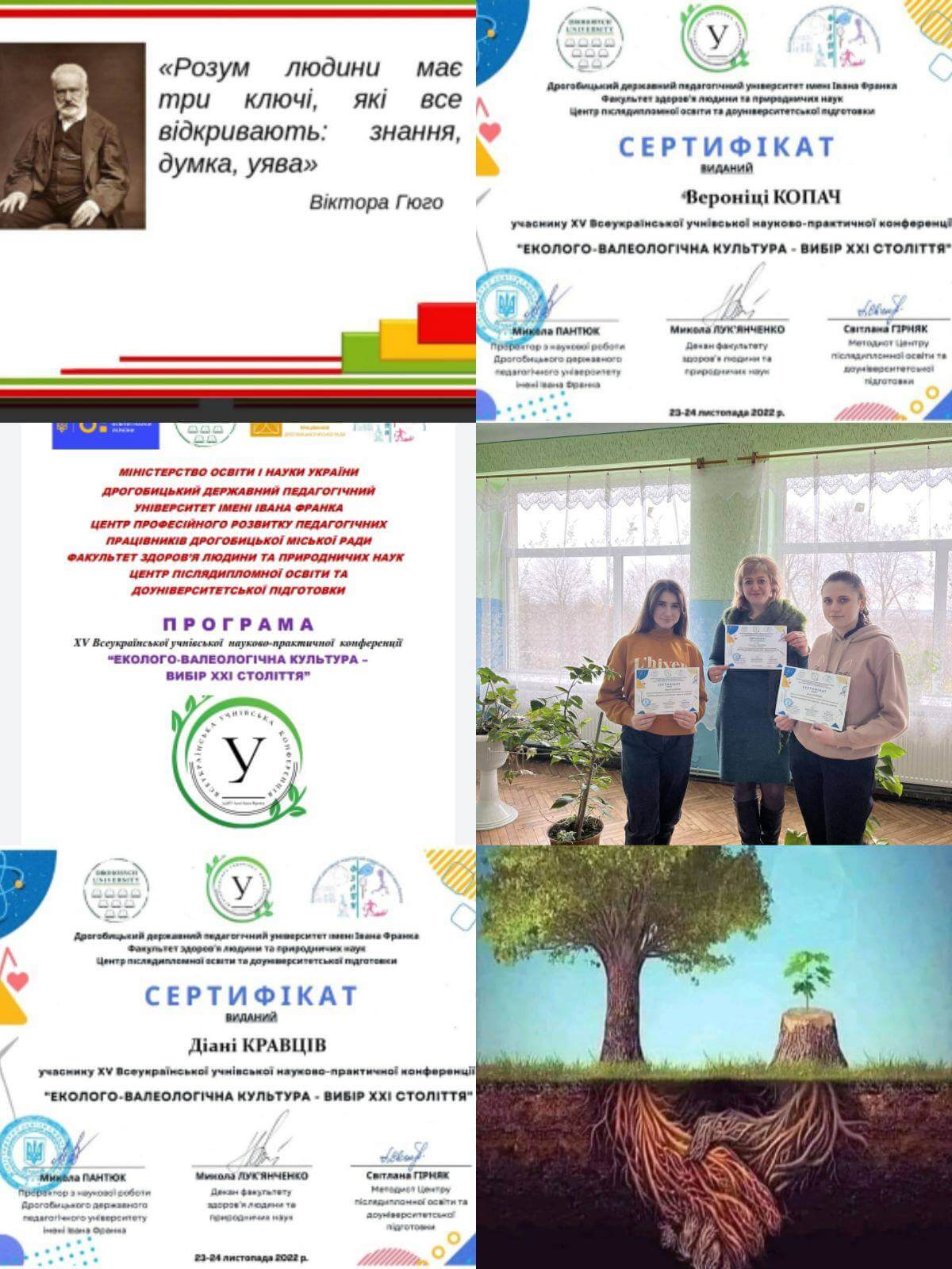 І знову учні нашої школи: Копач Вероніка – учениця 9 класу та Кравців Діана – учениця 10 класу показали свій професіоналізм взявши участь у XV Всеукраїнській учнівській науково-практичній конференції ” Еколого – валеологічна культура – вибір ХХІ століття”.