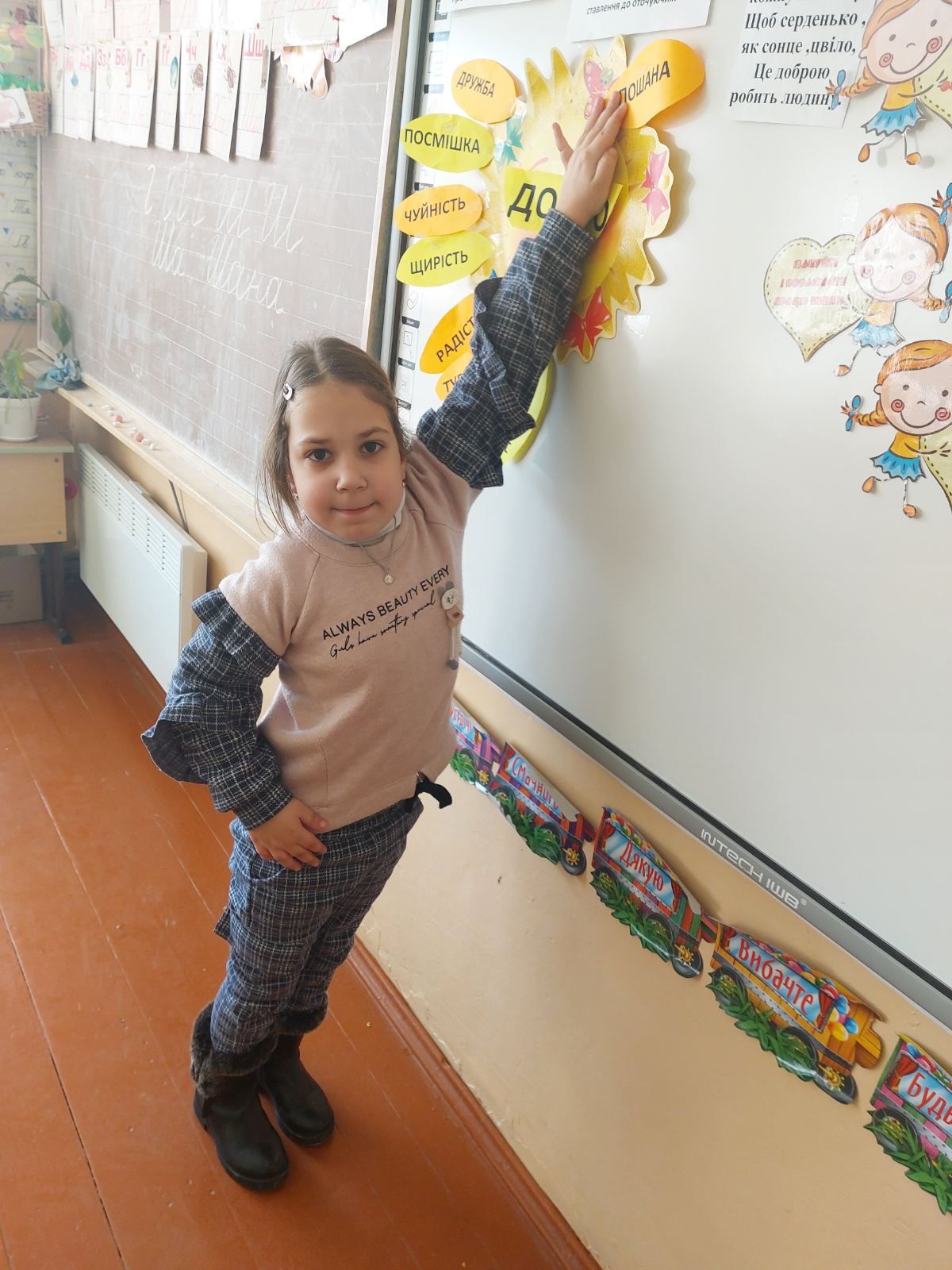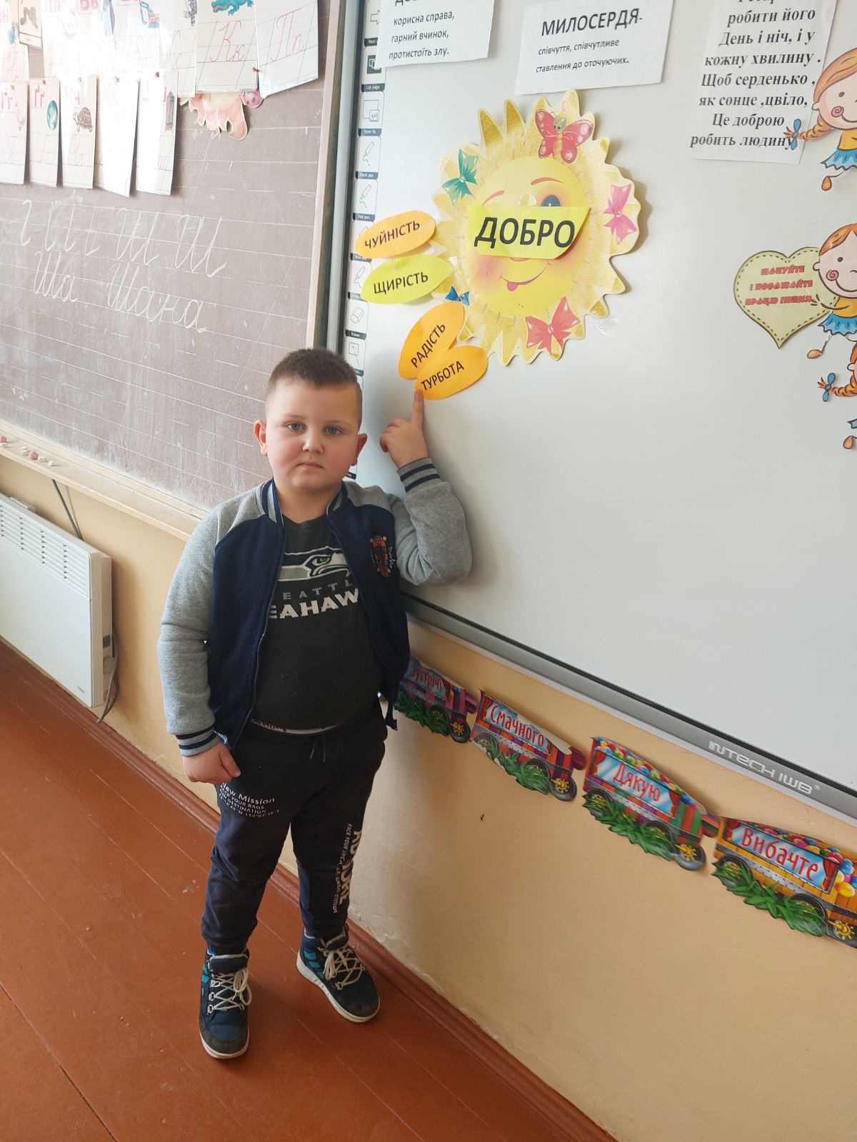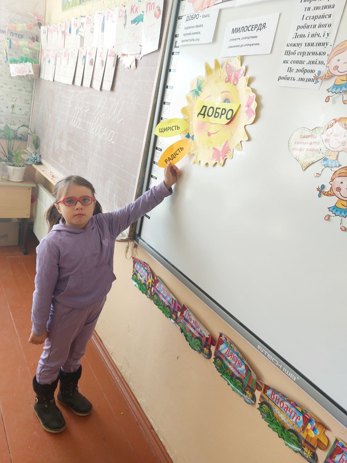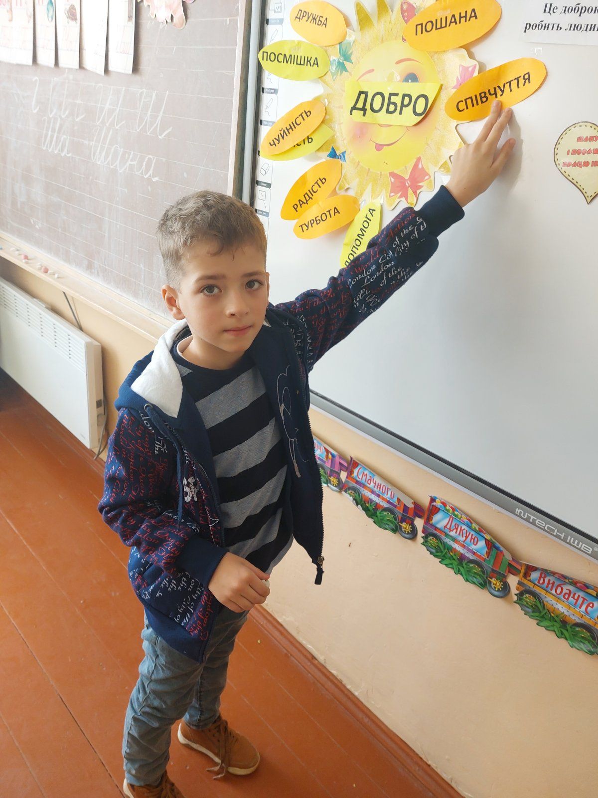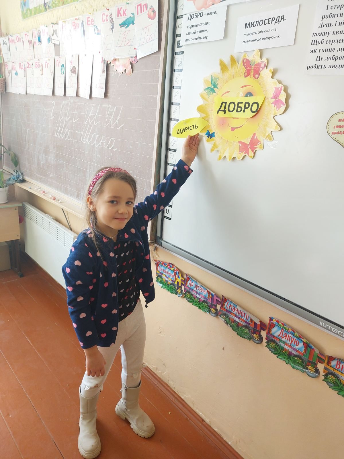 17.02 учні 1 класу провели виховну годину “Хай оживає істина стара-людина починається з добра”, присвячену спонтанному прояву доброти. Дівчатка і хлопчики засвітили сонечко доброти своїми промінчиками, на яких були написані слова,які асоціюються із добром та добротою.Якраз саме зараз усім потрібні ці прості, але вагомі слова…