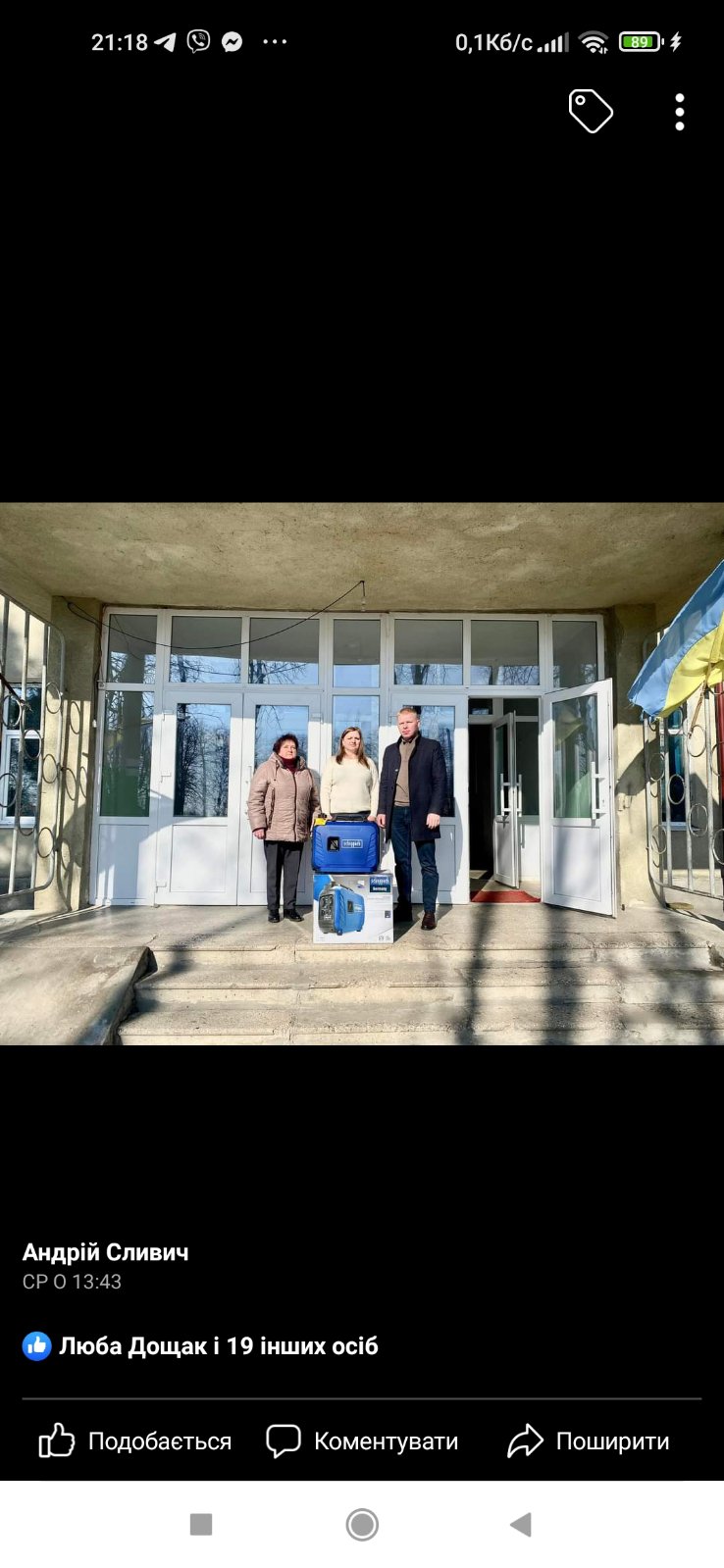 Відтак за підтримки Голови Львівської обласної Ради Ірина Гримак, всі одинадцятирічні школи (5 шкіл) нашої громади, для навчання у комп’ютерних класах шкіл Меденицької ТГ є забезпеченими інверторними генераторами для безперебійного навчання у разі аварійних відключень.
