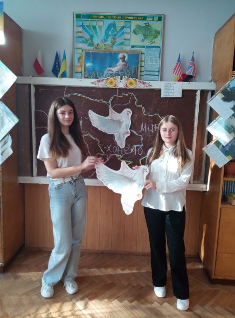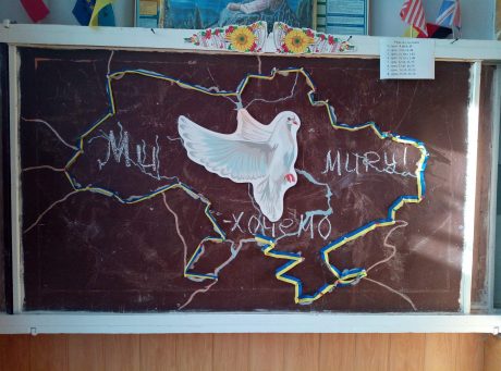 ” Як хочеться, щоб тихо ніч пройшла! Як хочеться, щоб світлий день настав! Щоб Україна в мирі зажила І щоб ніхто нікого не вбивав.” Мета: показати наскільки важливим є мир для кожної людини, кожного народу і всього світу; страшні наслідки війни ( смерть, розруху, голод і холод, техногенні катастрофи); як Україна величезною ціною бореться проти російської агресії, щоб наші нащадки ніколи не знали війни.