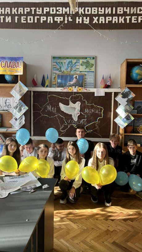 ” Як хочеться, щоб тихо ніч пройшла! Як хочеться, щоб світлий день настав! Щоб Україна в мирі зажила І щоб ніхто нікого не вбивав.” Мета: показати наскільки важливим є мир для кожної людини, кожного народу і всього світу; страшні наслідки війни ( смерть, розруху, голод і холод, техногенні катастрофи); як Україна величезною ціною бореться проти російської агресії, щоб наші нащадки ніколи не знали війни.